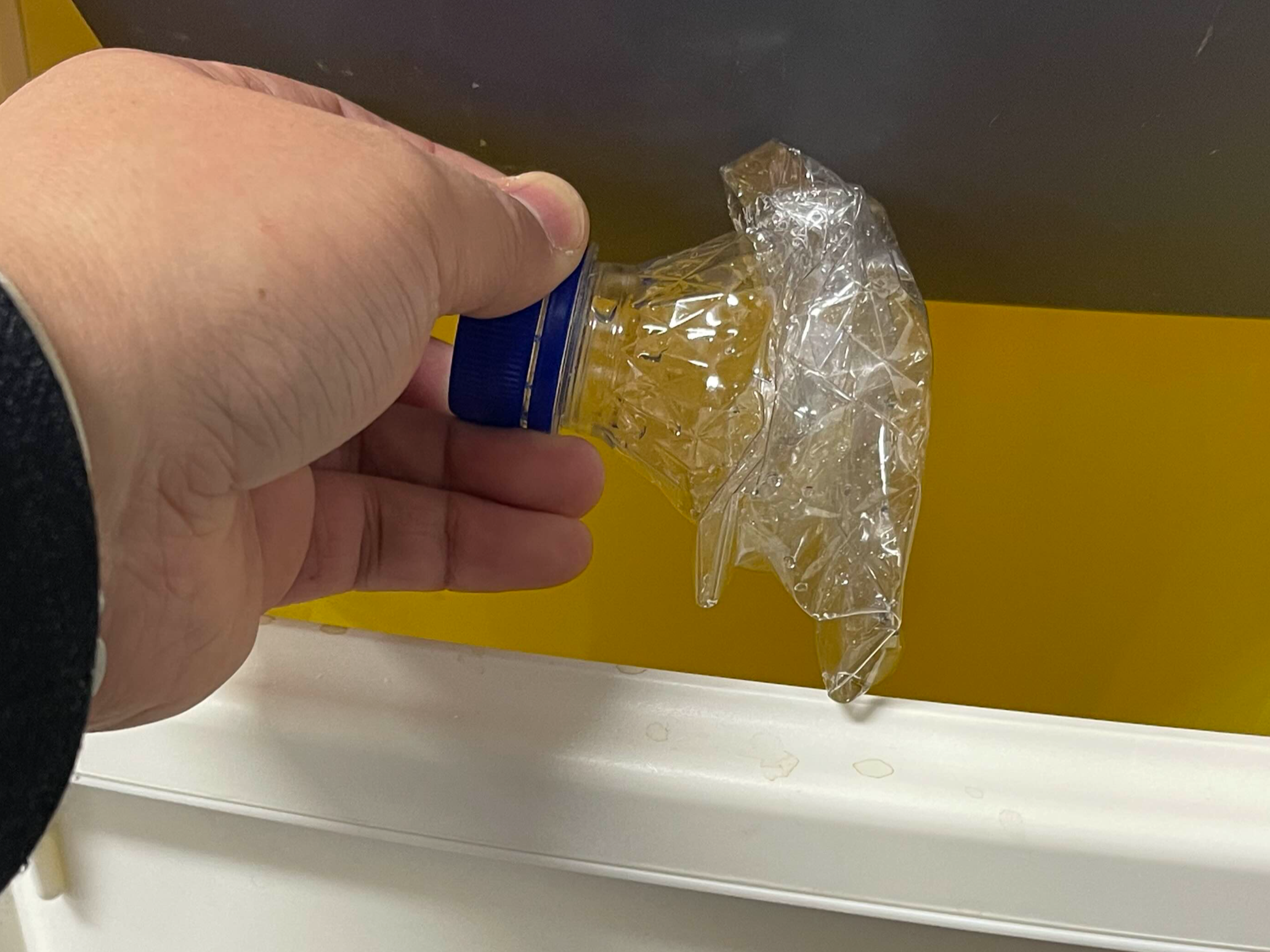 그리고나서 페트병을 찌그러트려서 작게 만들어주세요!