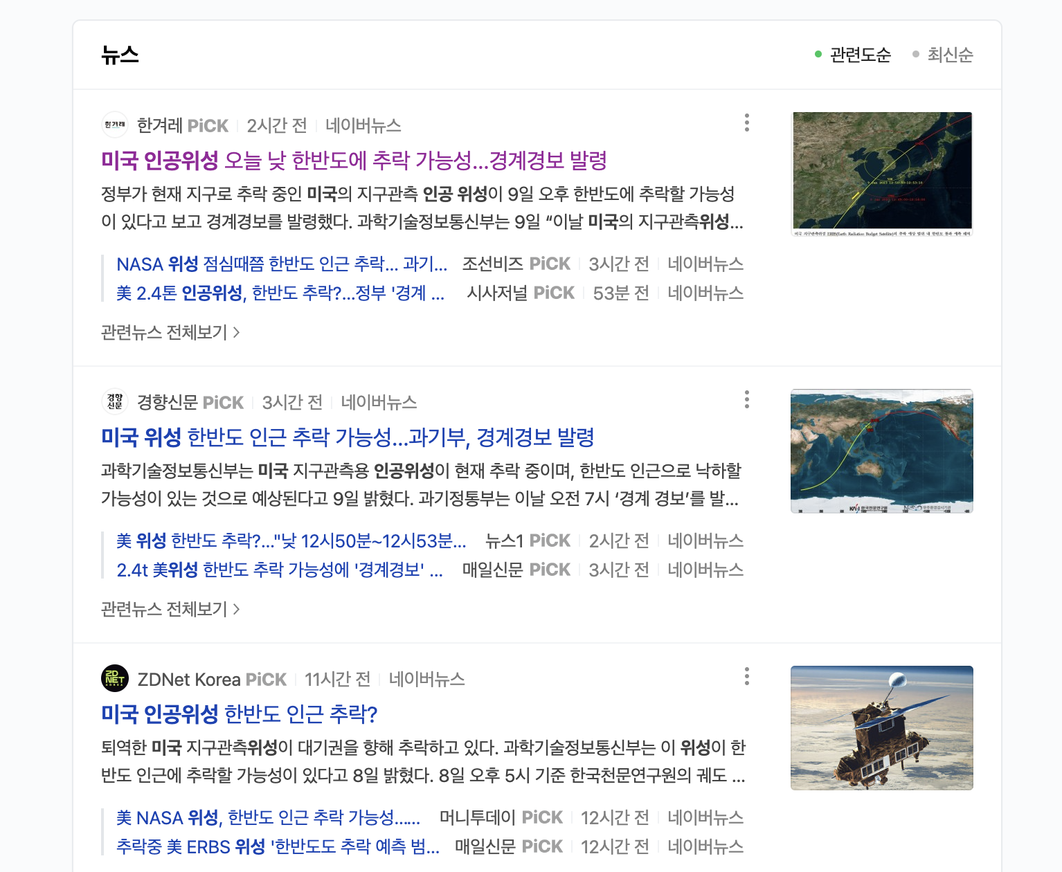 오늘은 한반도에 미국 인공위성이 추락한다는 뉴스가 핫하네요.