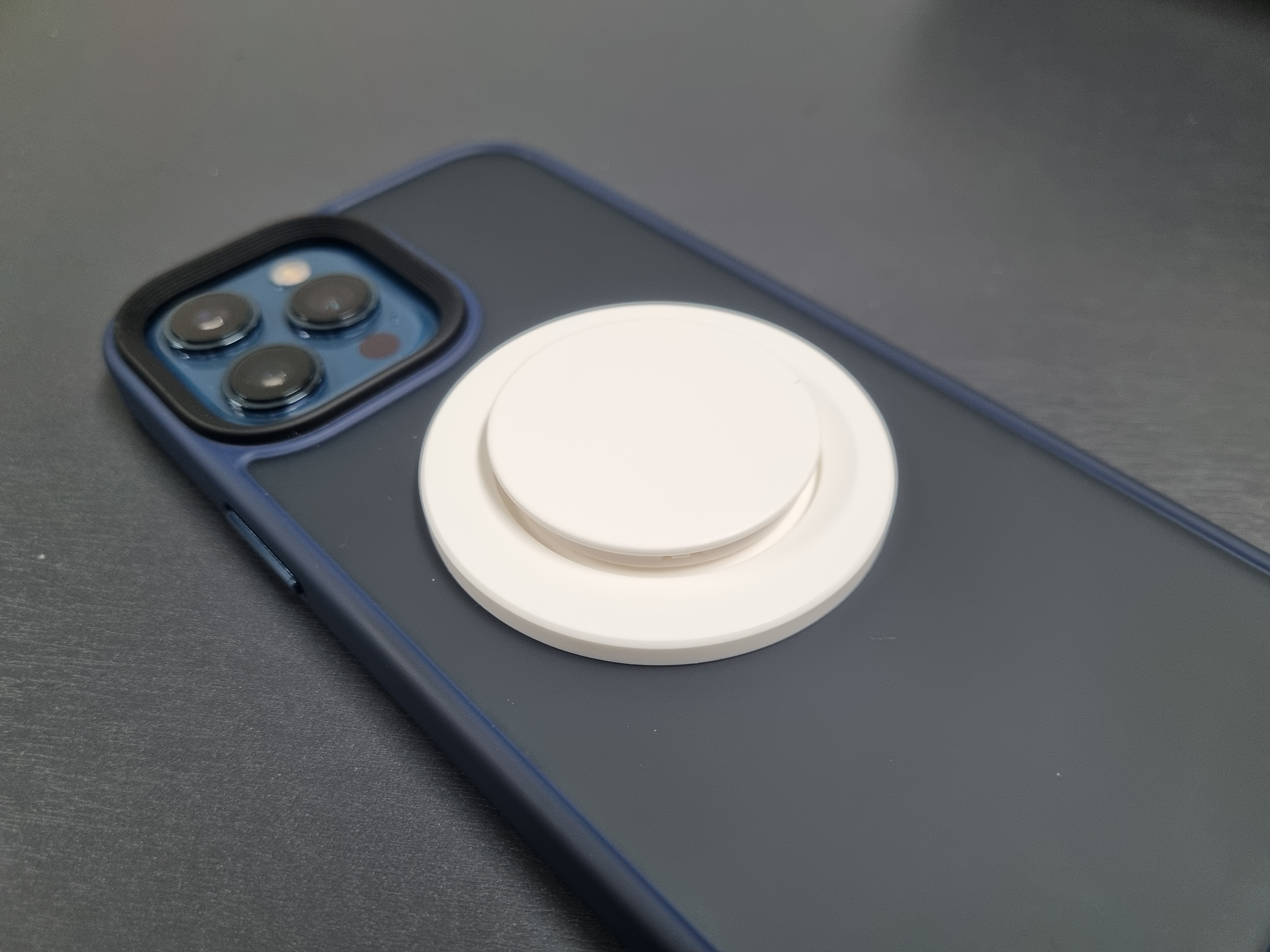 맥세이프를 지원하는 기종은 아이폰12 모델부터인데요, 아이폰 뒤에 동그랗게 자석이 붙는 성질이 있어서 이런 맥세이프 그립톡을 사용할 수 있어요.