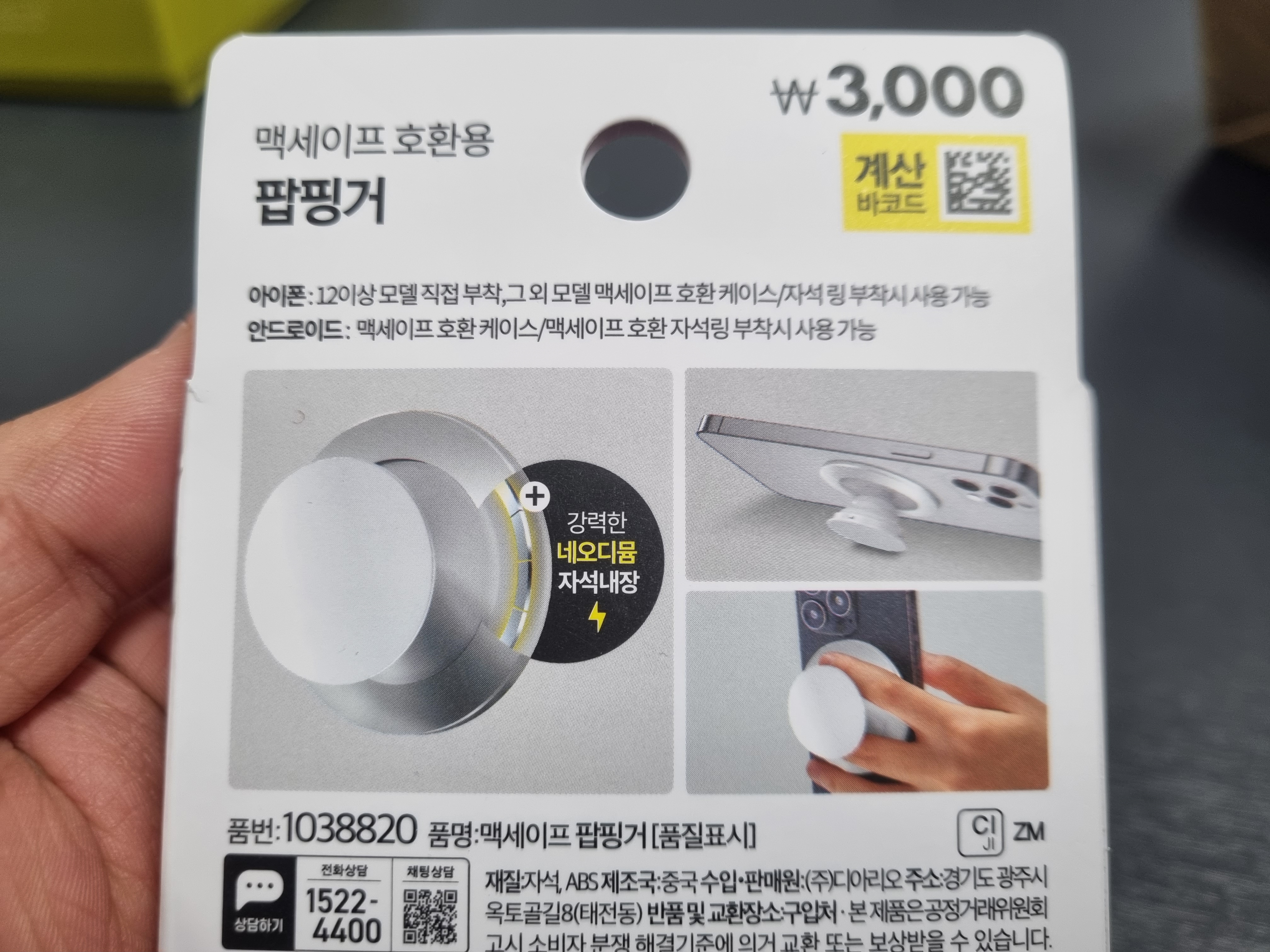 맥세이프 그립톡이라고 하기에는 눈치가 좀 보였는지 팝핑거라는 이름으로 판매하고 있네요.