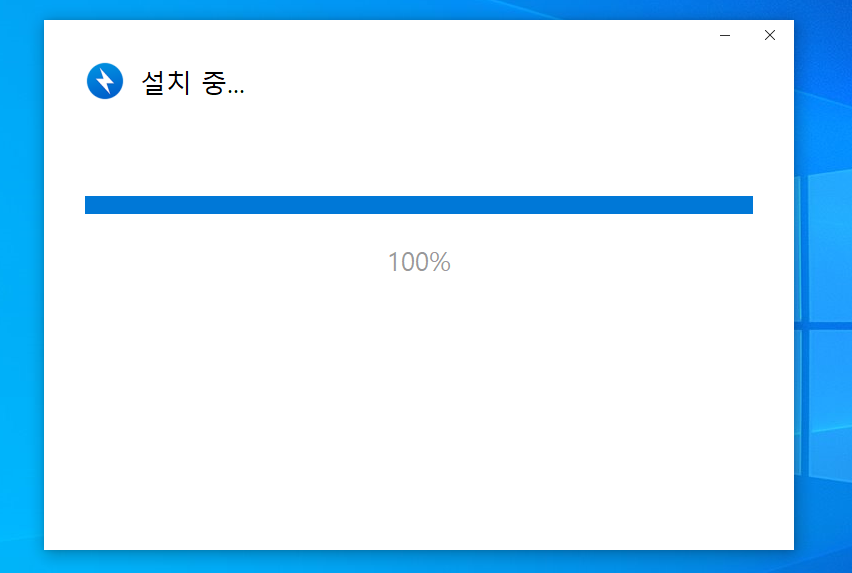 프로그레스바가 쭉 진행되고나면 설치를 완료하였다는 문구가 떠요!