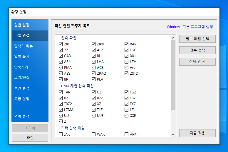 이후 환경설정이 나오는데, 필수 파일 선택을 누르고 지금 적용을 눌러주면 됩니다.