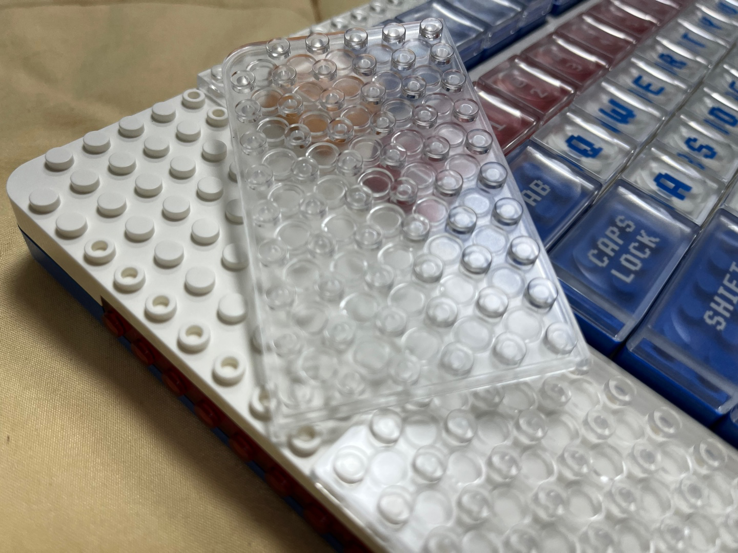 텐키리스 키보드이지만 좌우측에 레고를 끼울 수 있게 되어 있어서 사이즈는 풀배열 정도 되는 것 같아요!