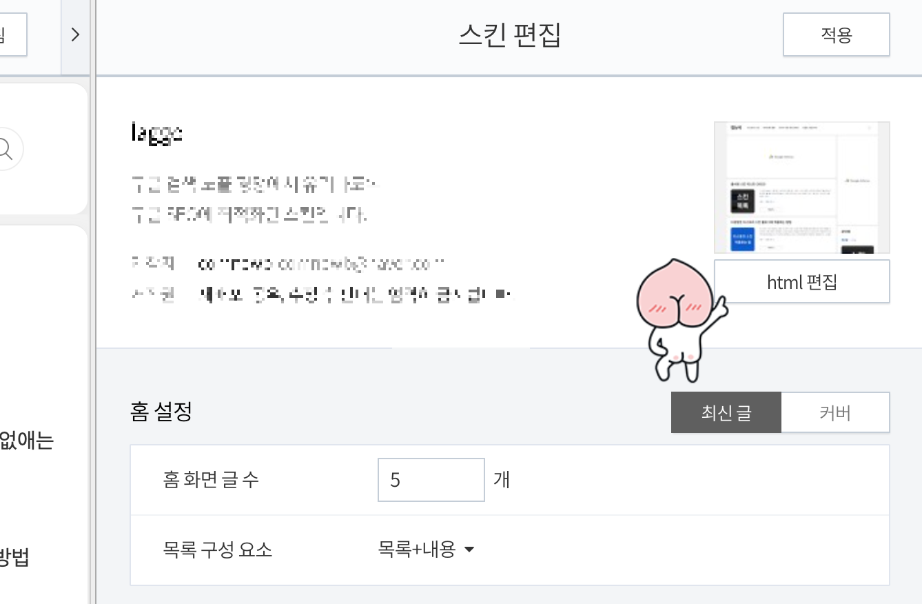 티스토리 설정에 들어가서 꾸미기 - 스킨 편집을 눌러 들어가주세요.